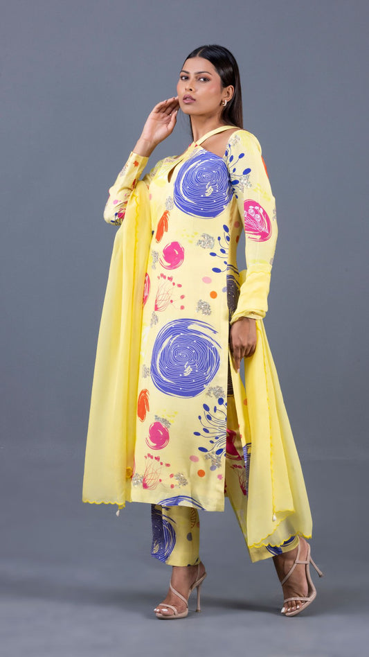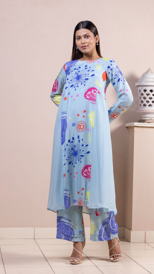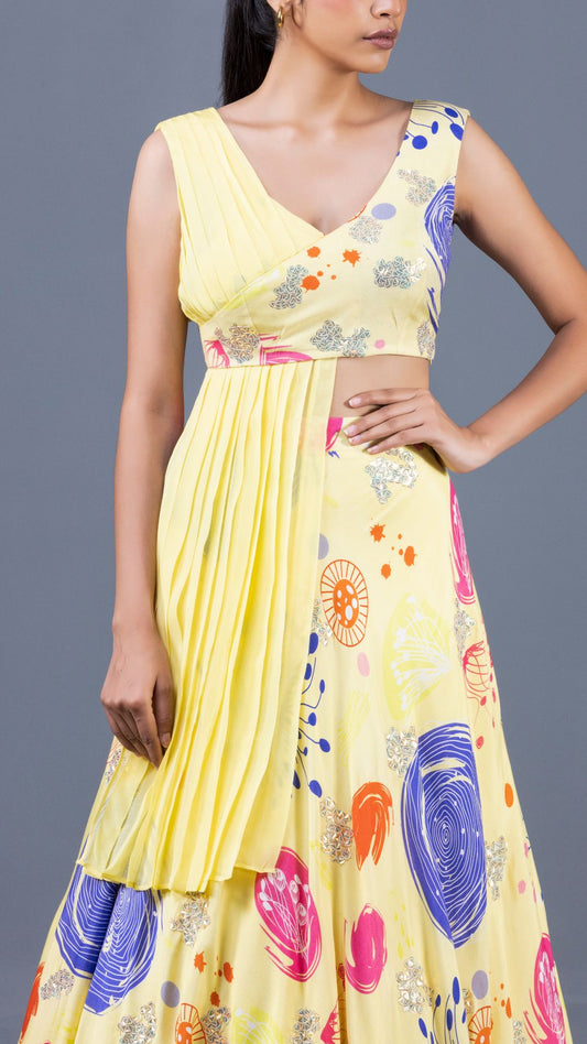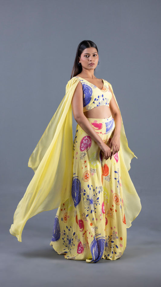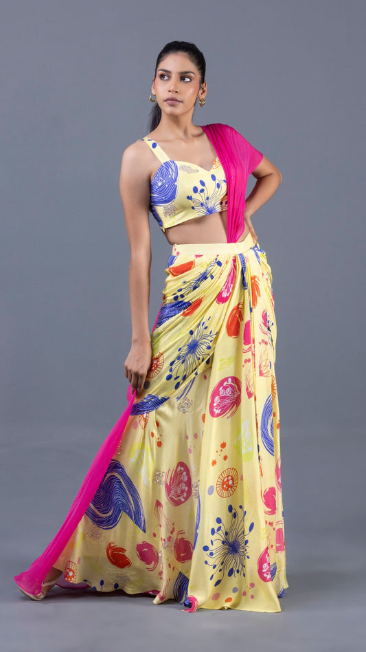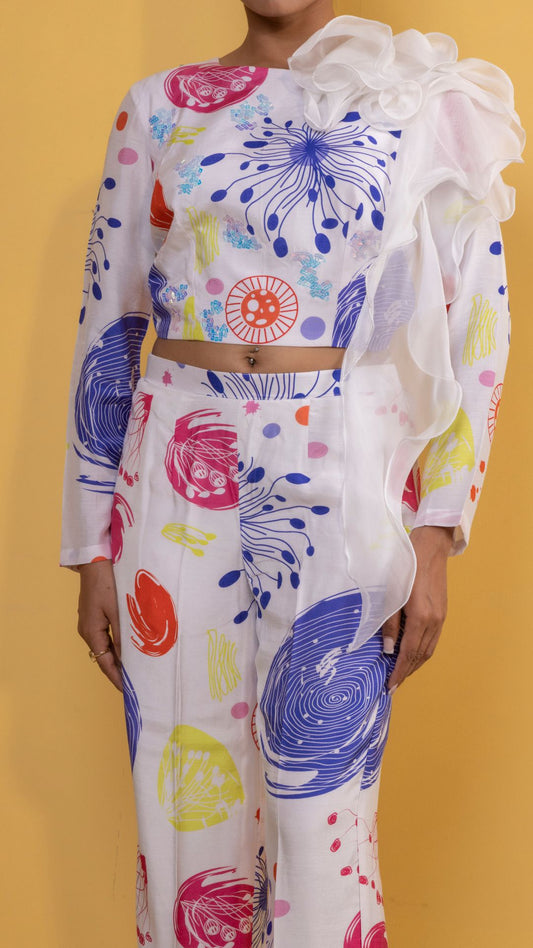 Citrus Reef Crop top with Pant Skirt Style Co-ord Set