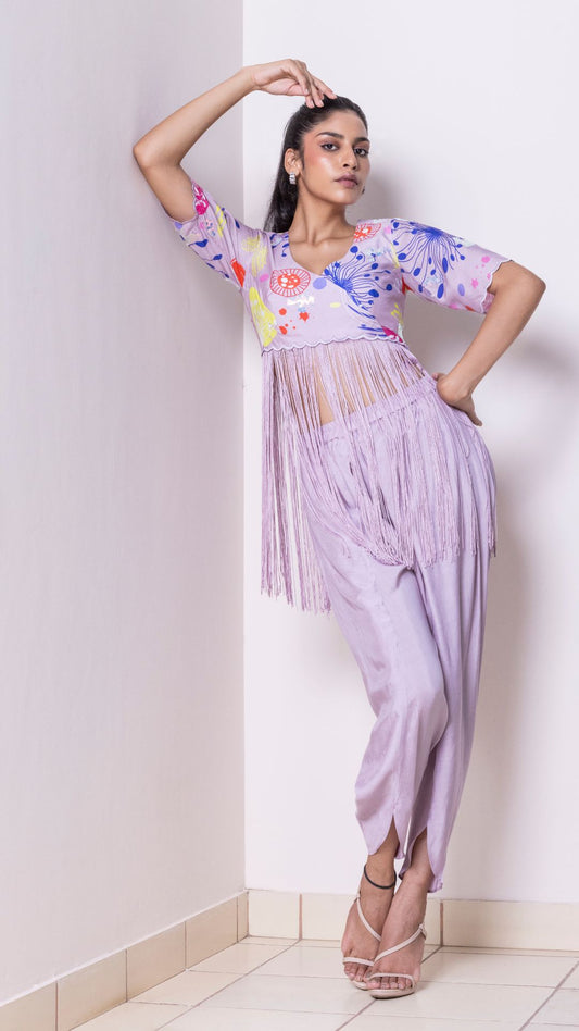 Branched Fringe Top-Dhoti Pants Co-ord Set