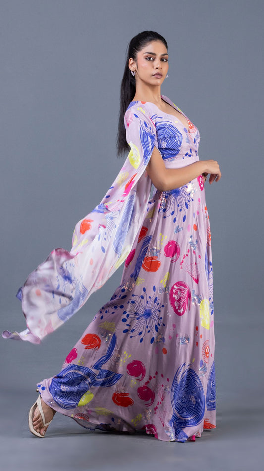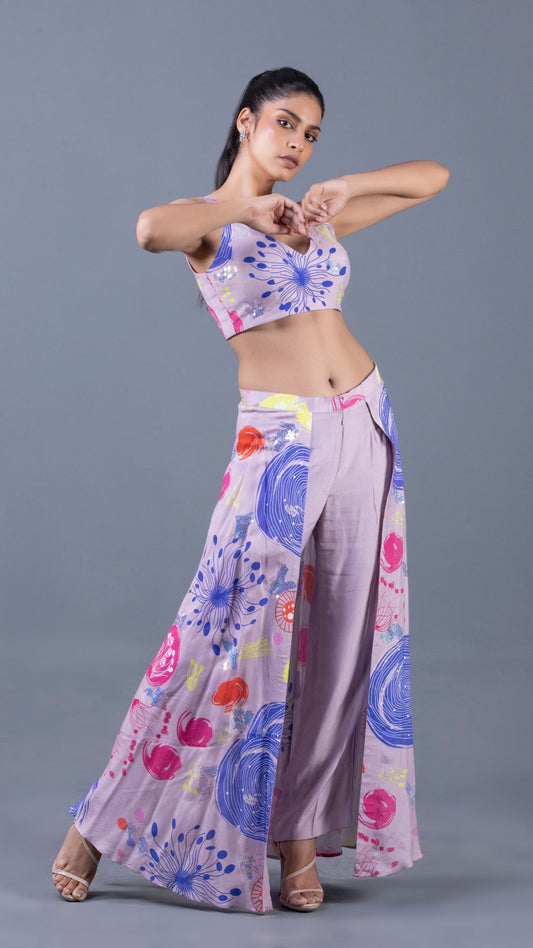 Carnation Coral Bralette Top- Bell Pant Style Co-ord Set