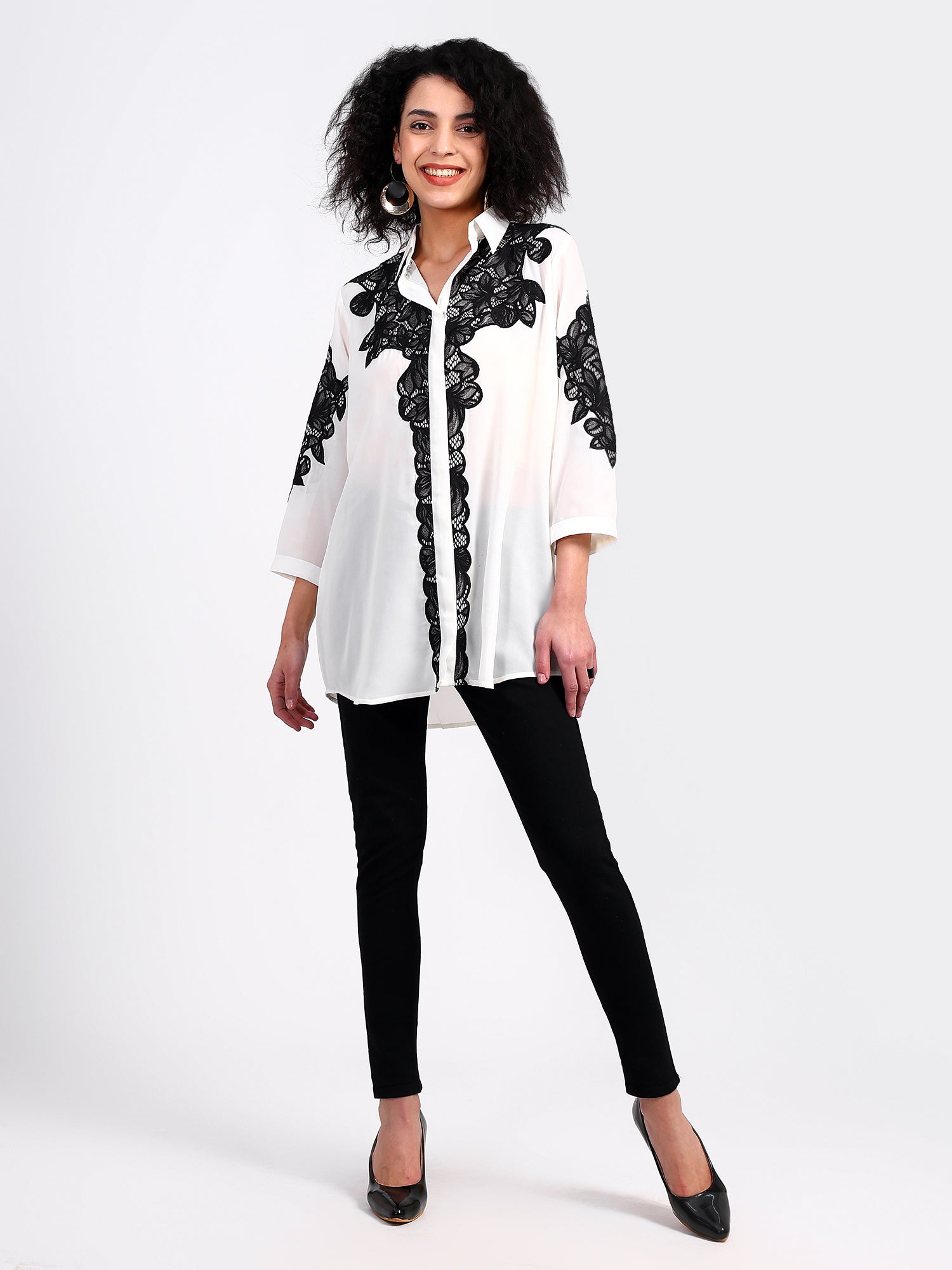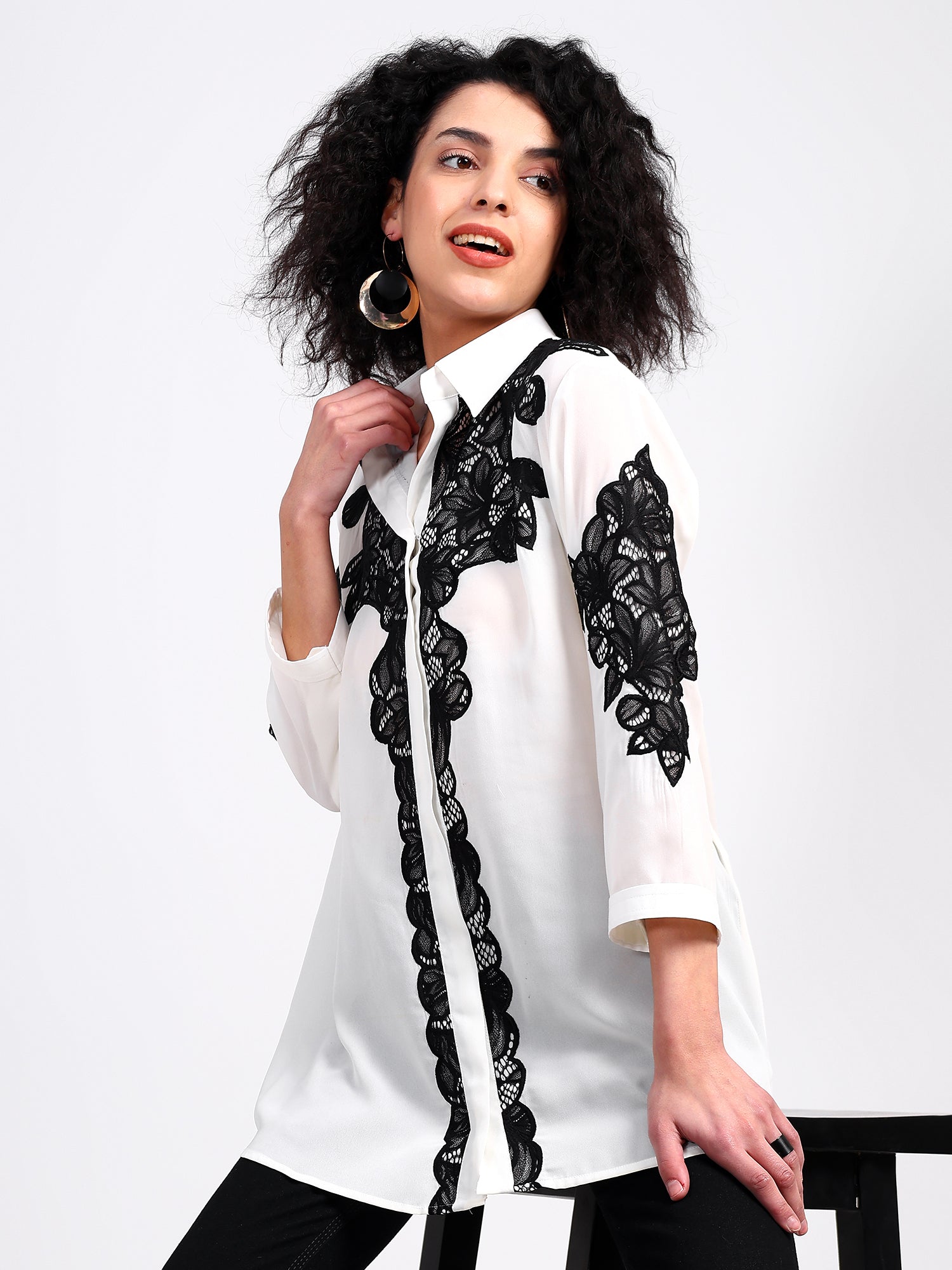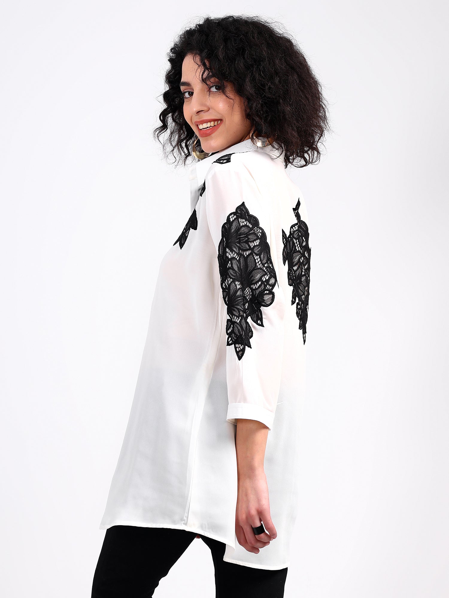 Shirt with chandelier net applique work all over